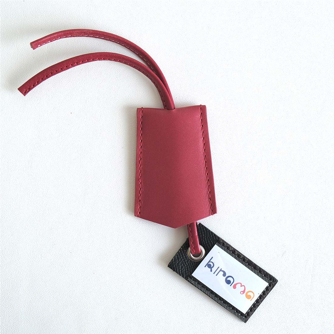 Ce porte-étiquette artisanal en cuirrouge se compose d’une étiquette intérieure coulissante pour inscrire vos coordonnées en toute discrétion.