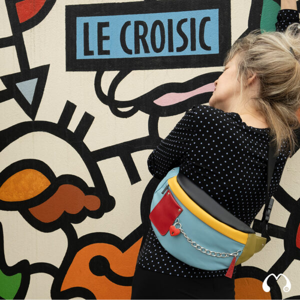 - Face arrière une poche zippée largeur 27 cm hauteur 12 cm